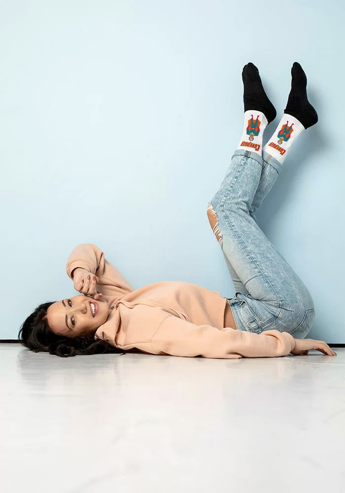 These socks are extra comfortable thanks to their cushioned bottom. The foot is black and graphics are sublimation printed on the leg with bold, crisp colors that won't fade.